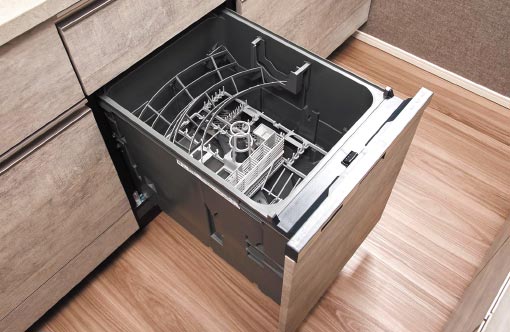 使用済みの食器をセットするだけで、洗浄から乾燥までを行う食器洗浄乾燥機を搭載しました。