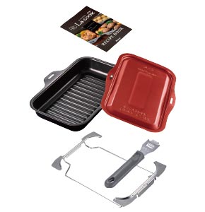 両面焼きグリルに入れて使う広くて大きい、波型深皿プレートで、蓋が付いているため、グリル庫内を汚さず、さらに煙やにおいを抑えて調理をすることができます。ガスの炎で包み込むようにして焼き上げるので、おいしく仕上がります。