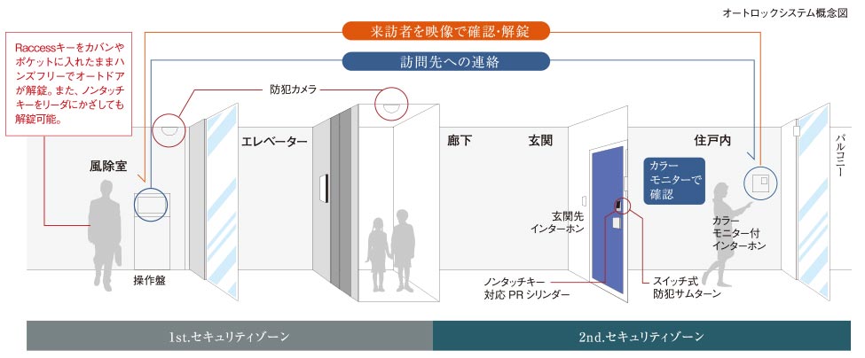 共用部分に防犯カメラ、1・2階住戸の窓には防犯窓センサー※1※1を設置